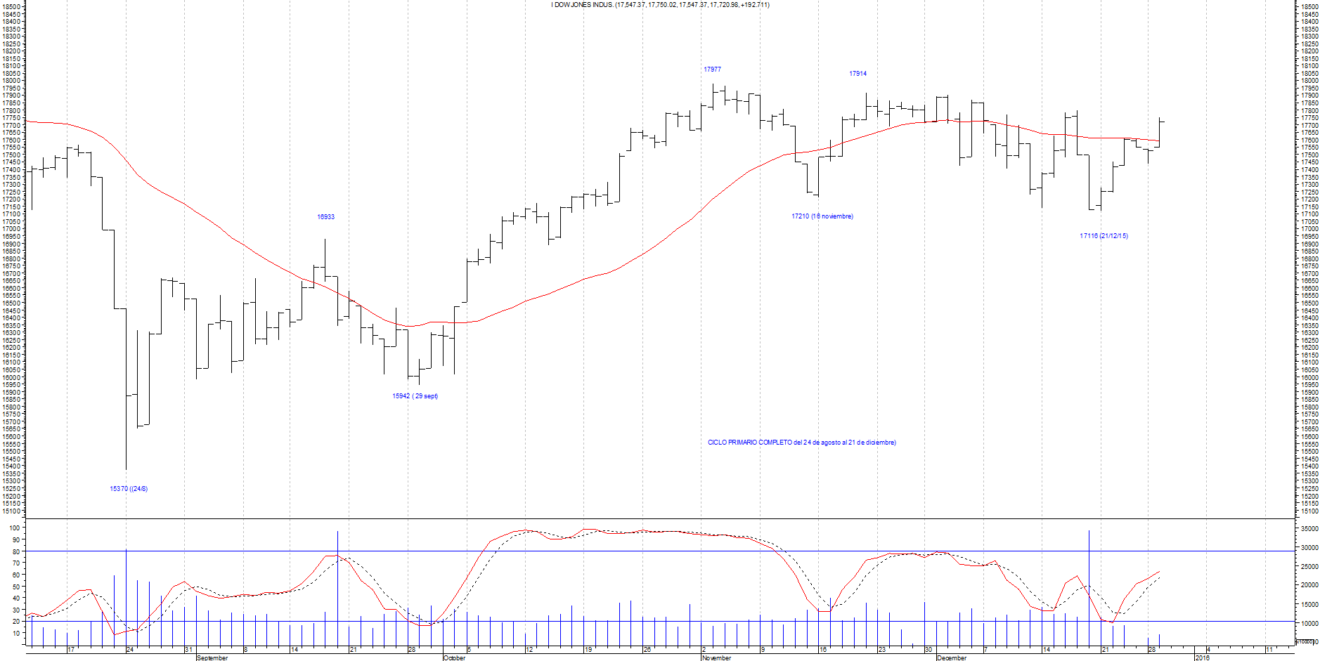 Dow Jones: Ciclo Primario (órbita media 15-21 semanas)