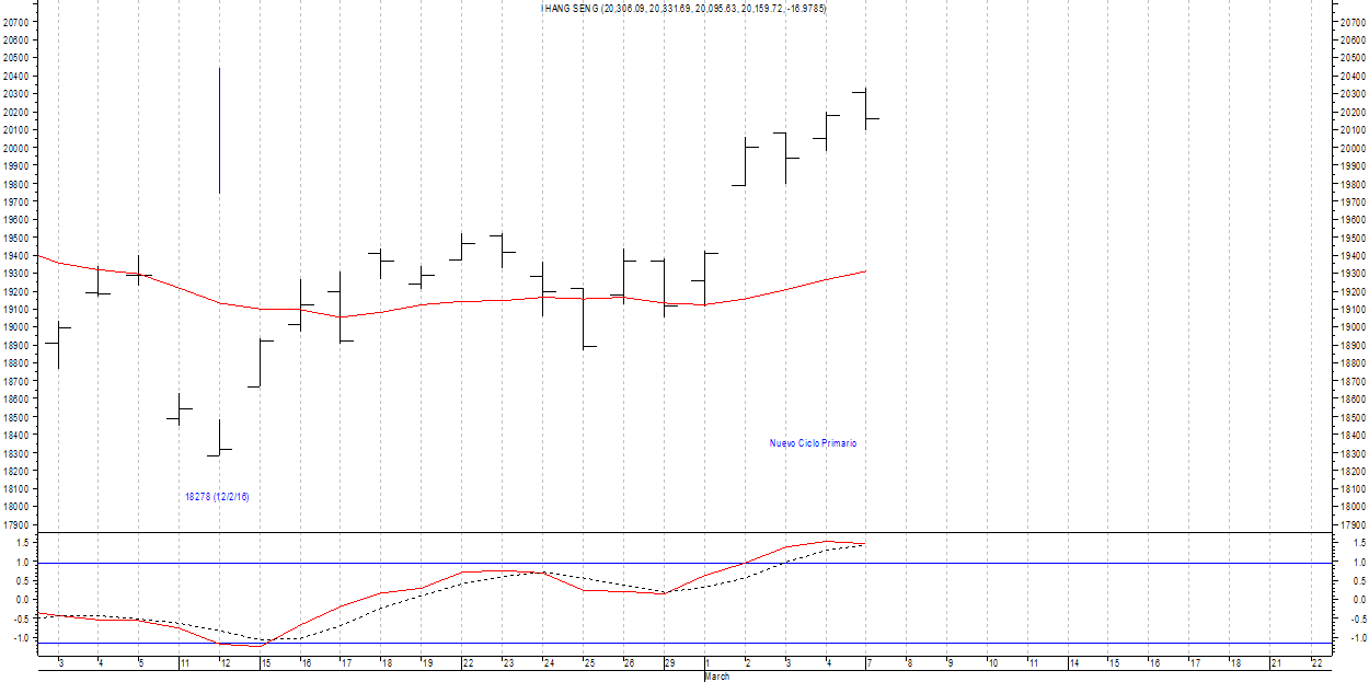 Hang Seng: CICLO PRIMARIO (orbita entre 15 a 21 semanas)