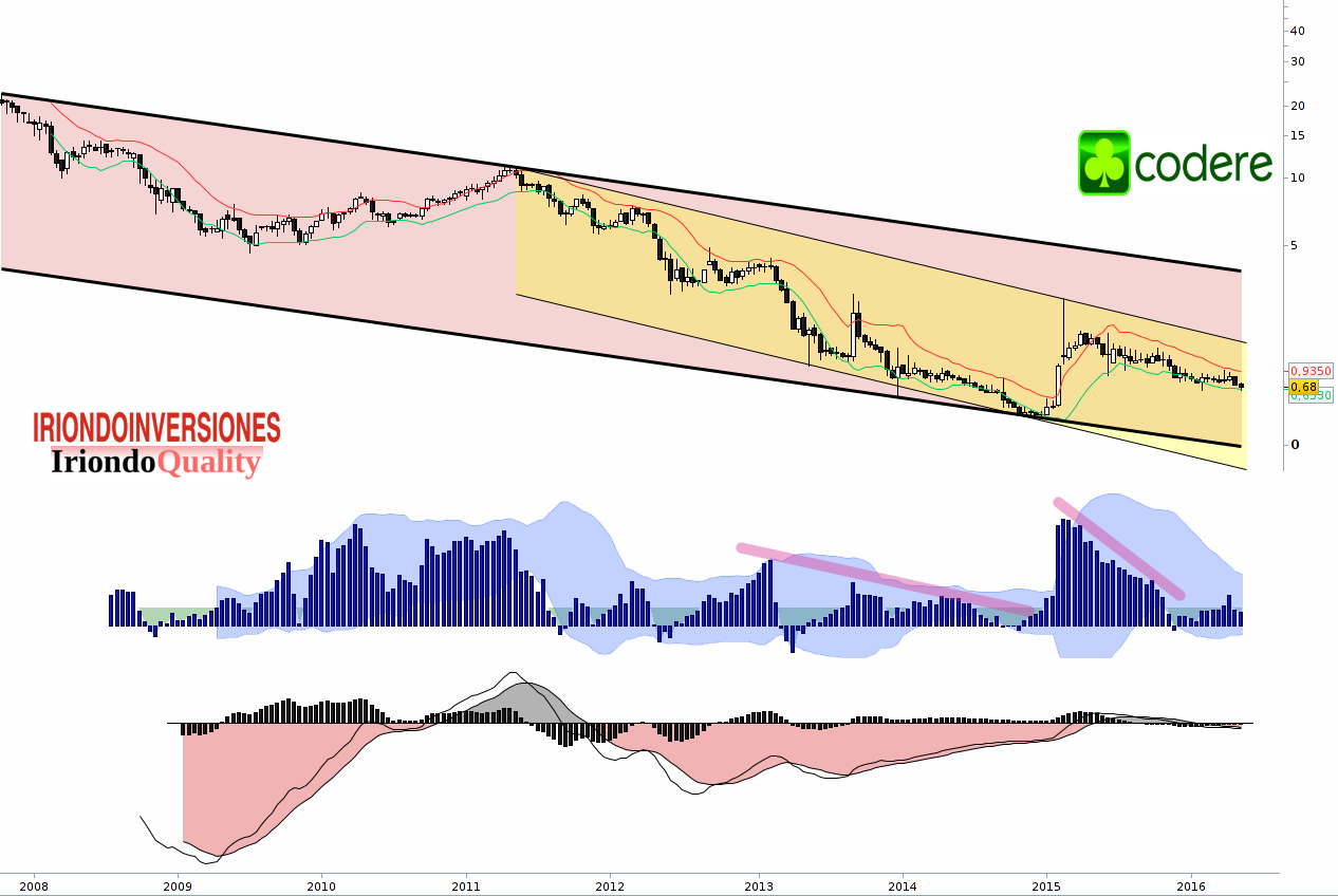 Saludos. Referente a Codere, igualmente en diario, semanal o mensual, la tendencia sigue siendo bajista por tanto, esa fe ciega de la que usted habla de sus amigos es la misma que la gran mayoría de inversores tienen en otros activos y por ello no quiere decir que tenga que hacer lo que uno o unos desean que hagan.