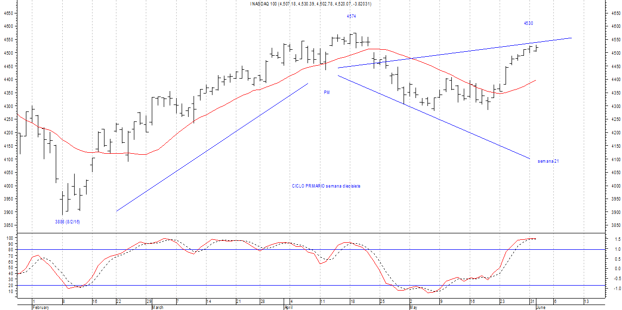 Dentro de la segunda mitad de mayo se hallaba el ciclo en condiciones de modelar nueva cresta, habiendo conseguido un doble techo 4574 – 4530.