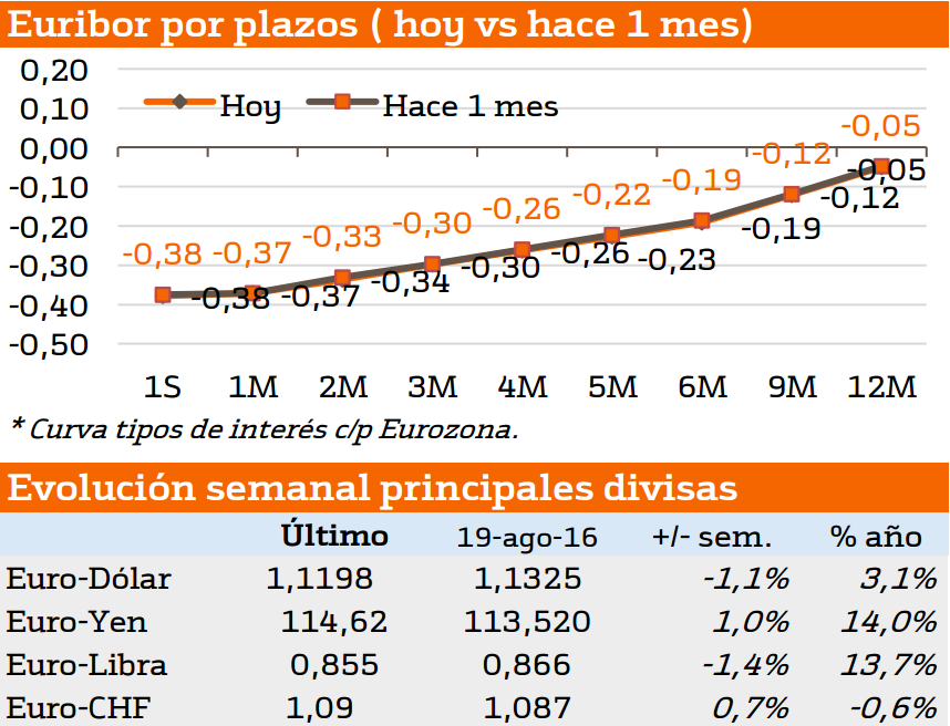 Movimiento lateral del cruce la semana pasada. Las palabras de Kuroda apuntando a posibles nuevos estímulos apenas tenían impacto en mercado. Esta semana el yen podría debilitarse ante las nuevas evidencias de debilidad económica que arrojará la macro (producción industrial) y las expectativas de nuevos estímulos en la reunión del Banco de Japón (BoJ) del 21 de septiembre (intervención de Juno del Comité Ejecutivo del banco central el miércoles).