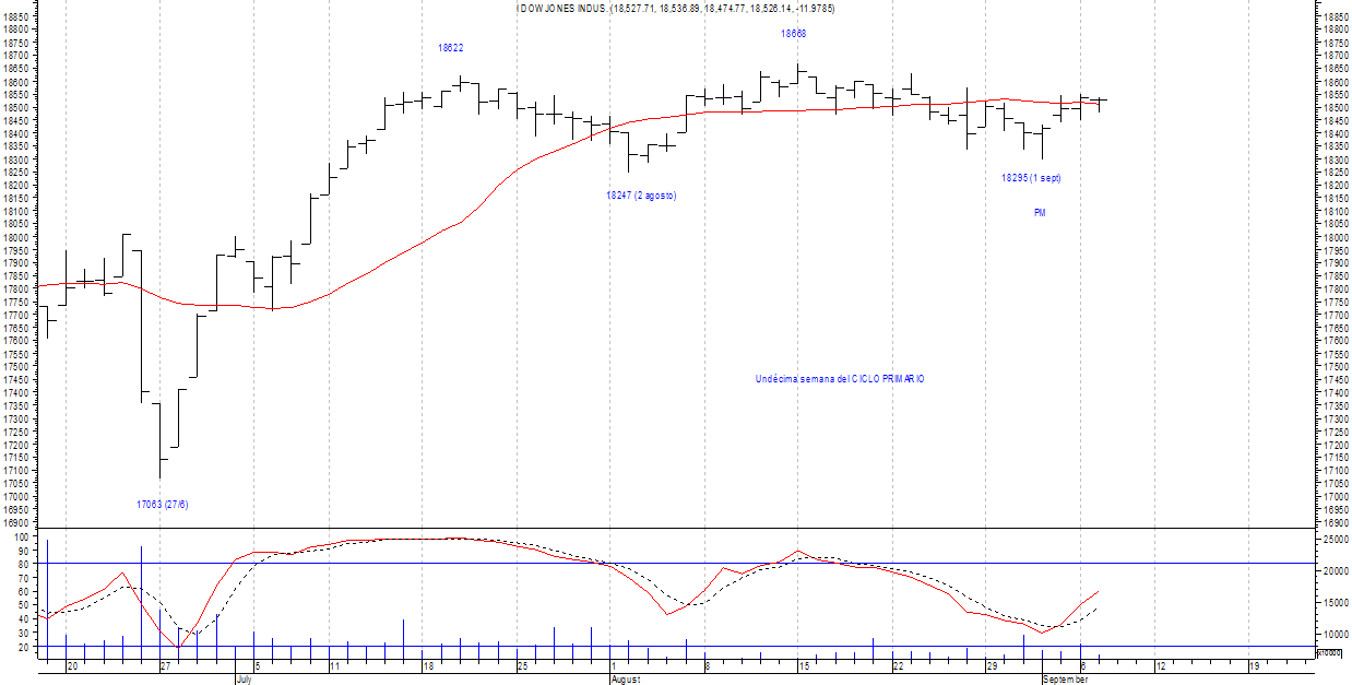 Dow Jones: Ciclo Primario (órbita media 15-21 semanas)