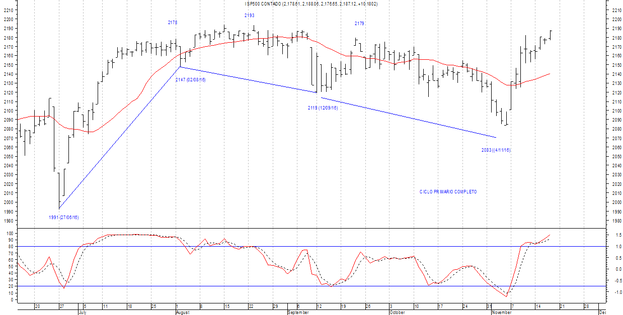 El ciclo natural, aquel al que determinados índices tienden a replicar, entrará en su tercera semana, la tendencia es alcista hasta la cresta de su primera mitad. Cabe una pausa intermedia entre el inicio de ciclo y la 1ª cresta, técnicamente dentro de la primera quincena de diciembre.