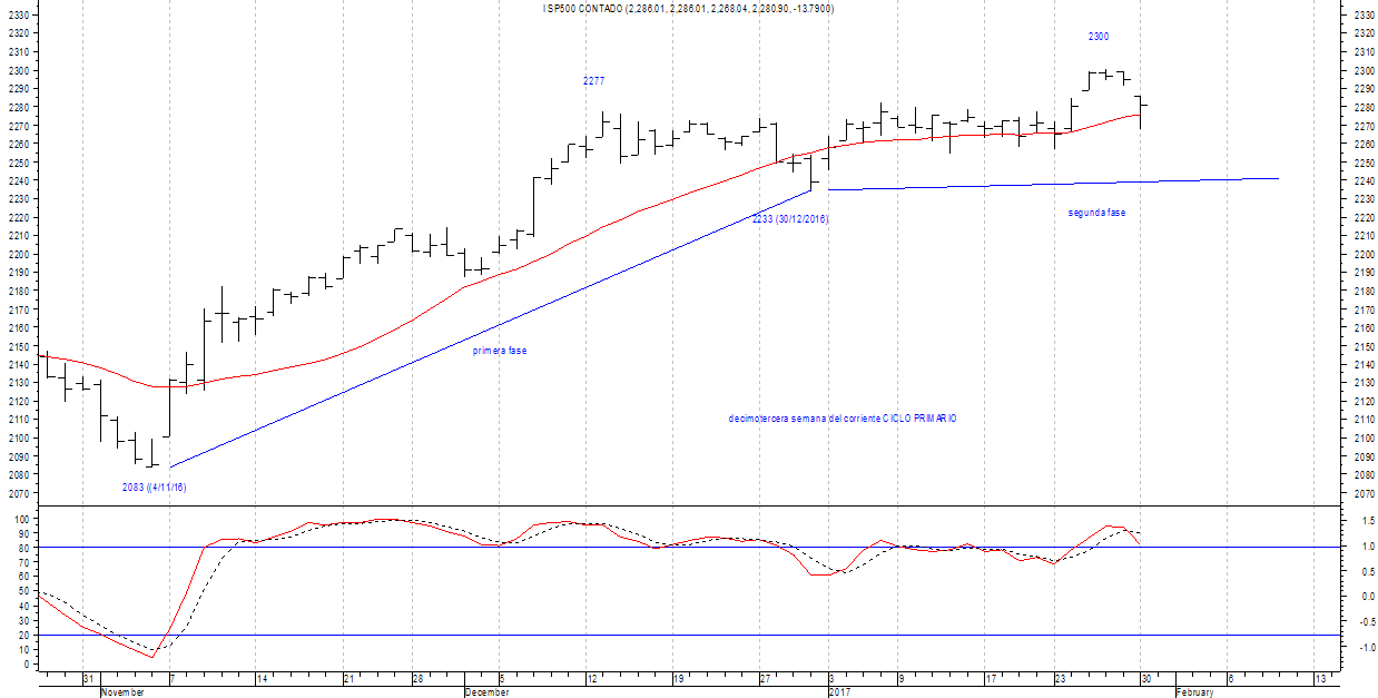 2ª FASE – Desde 30 de diciembre, prolongable hasta mediados de febrero, cresta de momento en los 2300 puntos, podría no ser la definitiva de la fase ya que hasta mediados de febrero cabe aun definir otra por encima.