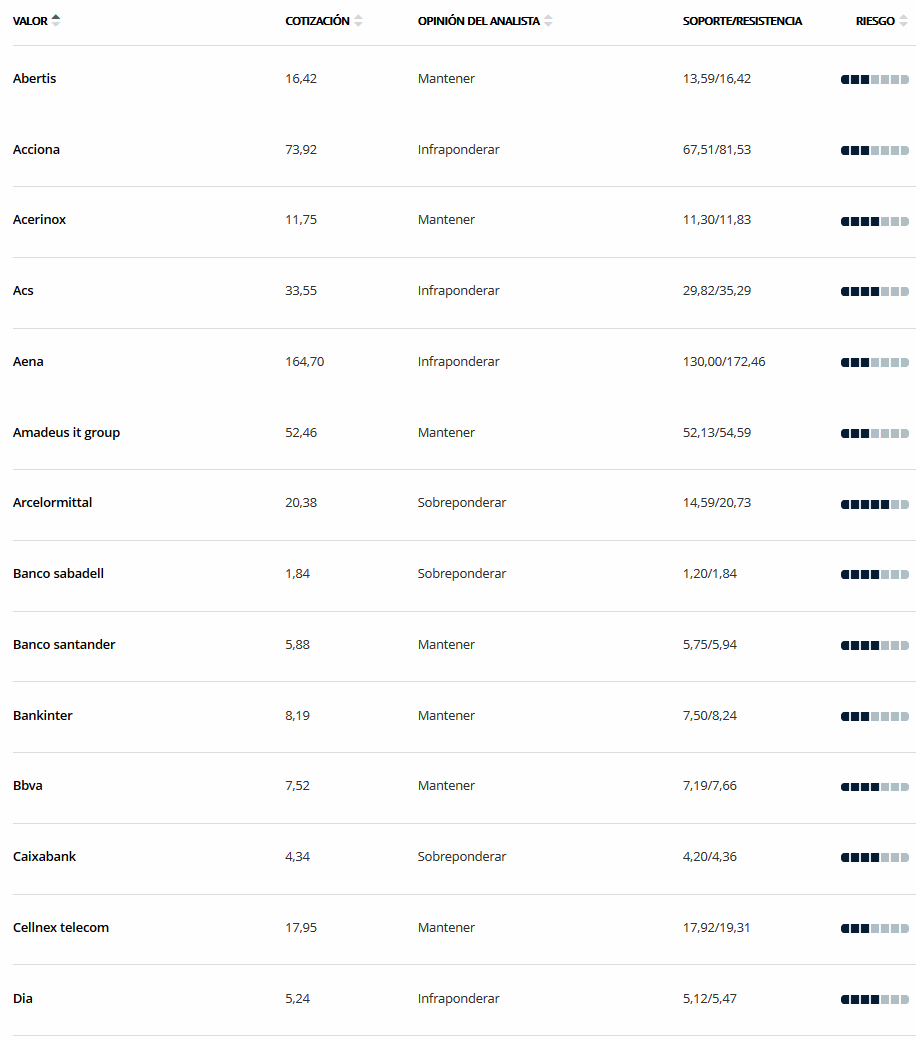 Se incluye la cotización del valor, opiniones de los analistas, soportes y resistencias, riesgo y volumen, además de otros indicadores.