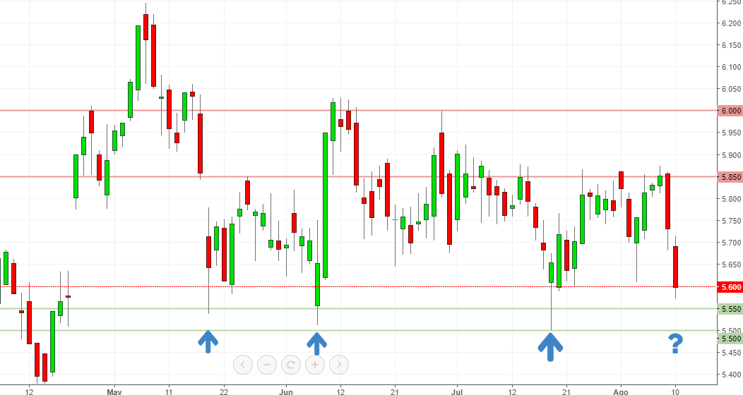 Durante los últimos meses las acciones de Banco Santander han rebotado al alza cada vez que se han acercado a la zona de los 5,5 € por acción. Por lo tanto, esta zona representa una zona de demanda. Es decir, soporte de corto plazo que podemos aprovechar para sacar provecho durante las próximas sesiones.