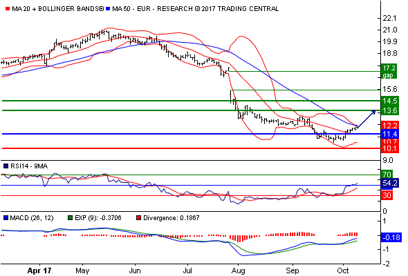 Técnicamente, elíndice de fuerza relativa (RSI) se encuentra por encima de su zona de neutralidad de 50. El indicador de convergencia/divergencia de medias móviles (MACD) se sitúa por encima de su línea de señal y es negative.