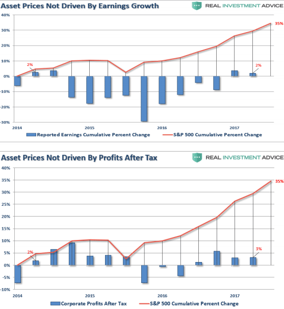 Desde 2014 la subida del S&P está siendo más abultada que los beneficios realizados por las empresas que lo componen. Desde la fecha las ganancias acumuladas suben el 2%, y 3% después de impuestos en tanto que el S&P acumula un 35% de subida.