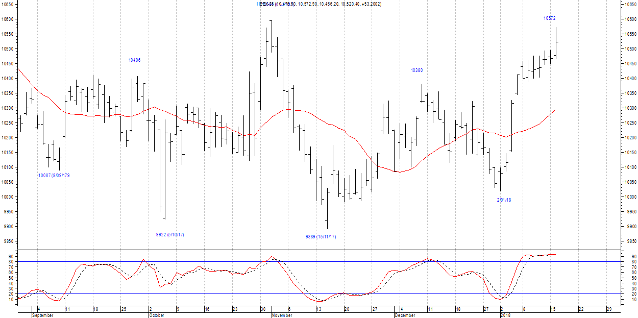 La segunda desde 2 de enero se halla en zona de cresta, de momento en los 10572.