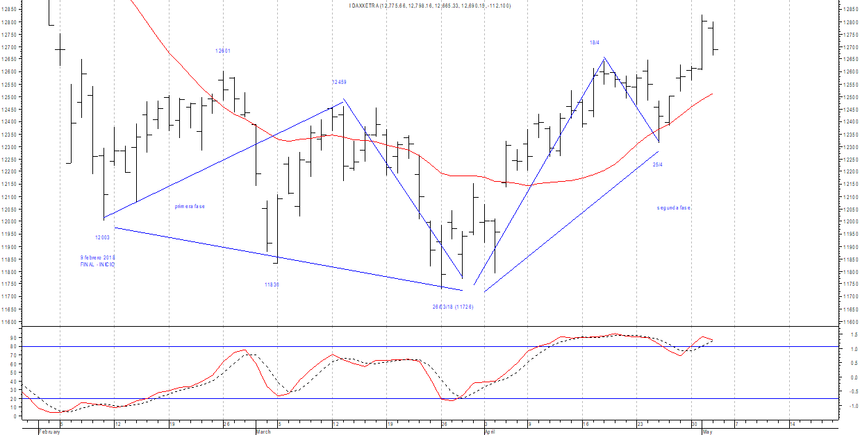 Primera fase: desde 9 de febrero hasta 26 de marzo, cresta de fase en los 12601 puntos y cierre de fase ligeramente por debajo de su inicio