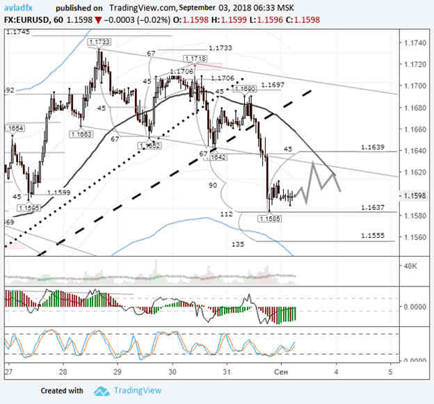 El viernes 31 de agosto, las cotizaciones en el euro cerraron a la baja. Durante la sesión europea, el precio se corrigió al nivel de 1.1690, que se convirtió en el máximo intradía. Desde allí, el precio bajó a 1.1585.