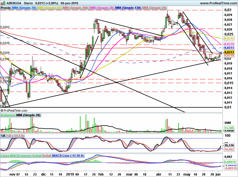 Por debajo la zona recuperada de 0,021€ debería funcionar como soporte.