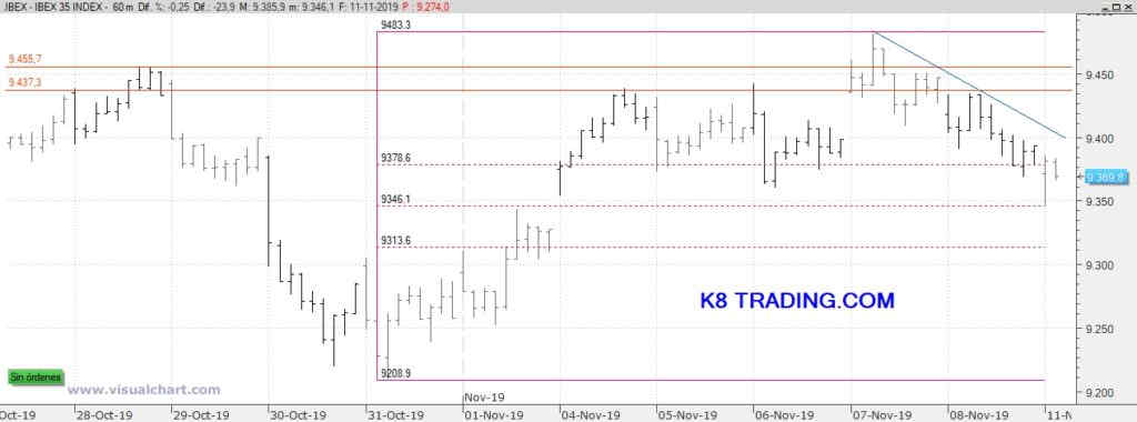 Por debajo de estos soportes, ya nos iríamos a los 9.150/9.200 puntos que consideramos que son una zona de gran apoyo. En K8 Trading seguimos pensando que los primeros días de noviembre son para operar poco y solamente en intradía esperando que se rompan niveles y se aclaren los posibles escenarios. Sigue el modo tragaperras, con lo que mejor no estar mucho en mercado.
