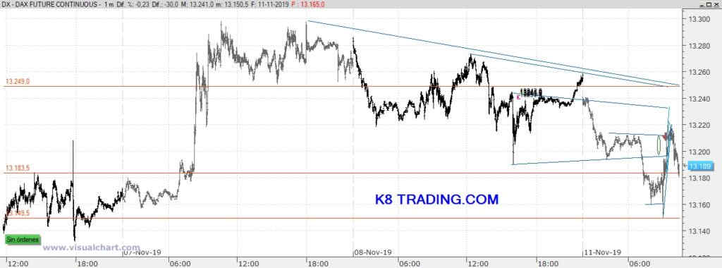 En K8 Trading hemos entrado bajistas para operativa intradía en nuestra Trading Room matutina, buscando la pérdida de esos 13.150 puntos con stop por encima de 13.250.