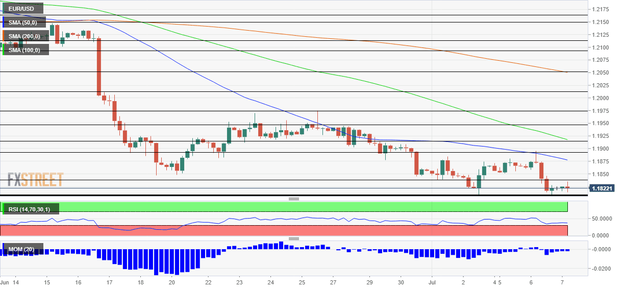 El par EUR/USD todavía está sufriendo un leve Momentum a la baja en el gráfico de 4 horas y se mueve por debajo de los promedios móviles simples de 50, 100 y 200 periodos. No obstante, se ha recuperado del mínimo de varios meses anterior de 1.1808, creando un doble suelo que podría servir como plataforma de lanzamiento para las ganancias.