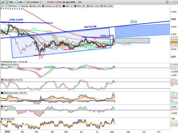 La situación mercado ahora diferente, pero situación técnica del valor ahora similar, donde clave será precio sobre 0,080€ y medias bajo precio.