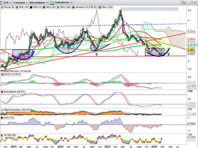 Si mercado descuenta lo publicado y buenas expectativas 2024, terminará por romper al alza. Estructura alcista.