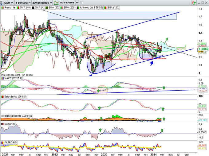 1,28€, -1,54% esta semana. Publicando excelentes resultados 2023, en línea con lo esperado, sirvieron para atacar resistencia 1,34€.