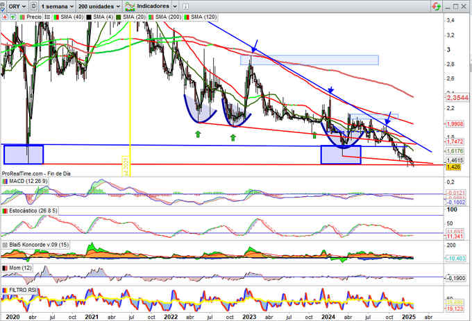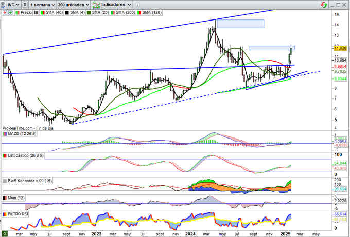 Precio Objetivo 2 por zona entre los 13,78€ y 14€ sin descartar extensión a Techo Canal Alcista, son precios de los primeros meses del año pasado y que podría repetir en estos primeros del 2025, presenta resultados esta próxima semana.