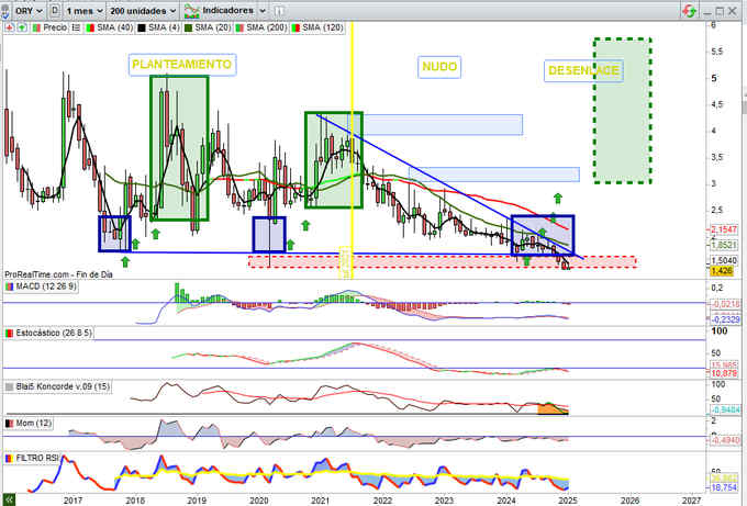 Sobre Gráfico Mensual y en dicha zona de relevancia inversora en este tipo de cotizadas y sector, una primera señal de confianza en el seguimiento del escenario propuesto en el cierre del mes de Enero, positivo, +1,86% pendientes de confirmación sobre posteriores en este primer trimestre 2025, importante para el valor.