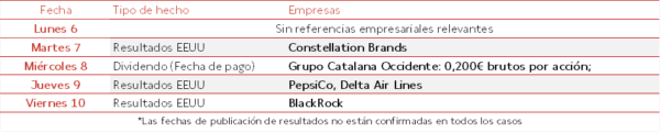 En el ámbito empresarial, será relevante la presentación de resultados de Constellation Brands, PepsiCo, Delta Air Lines y Blackrock, entre otros.