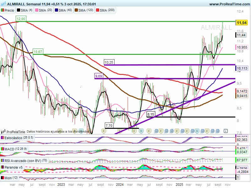 • Análisis técnico Alantra, Almirall, Acciona Energía, Cellnex, Ecoener e IAG 6 octubre 2025