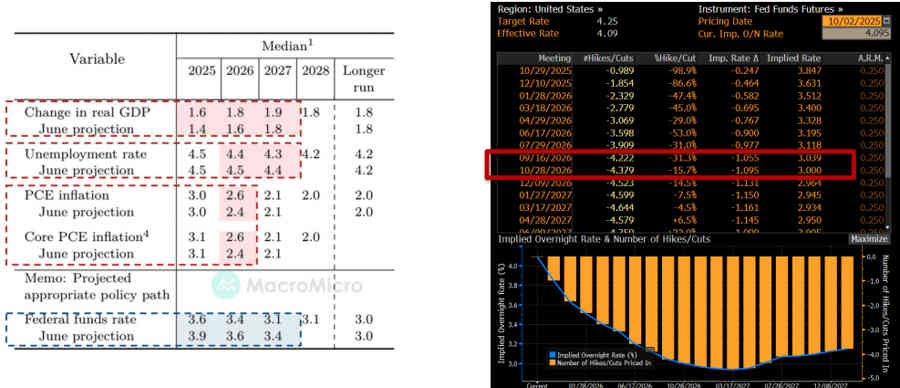 Mercados que tradicionalmente se comportan bien en los seis meses siguientes al inicio de relajación monetaria. FED que, con excepciones contadas, sigue prefiriendo la aproximación gradual en los recortes (2 más en 2025, 1 en 2026), con gran dispersión en la nube de puntos a 2026 donde estarían por detrás de la curva (implícitos que descuentan 2 bajadas adicionales).