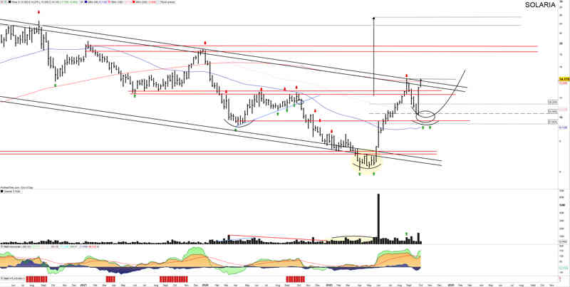 Su superación es la clave de Solaria, de hacerlo activaría proyecciones alcistas de calado, primero hacia zonas 19€ y más arriba y como proyección del fugaz HCHi la cota 24-26€.