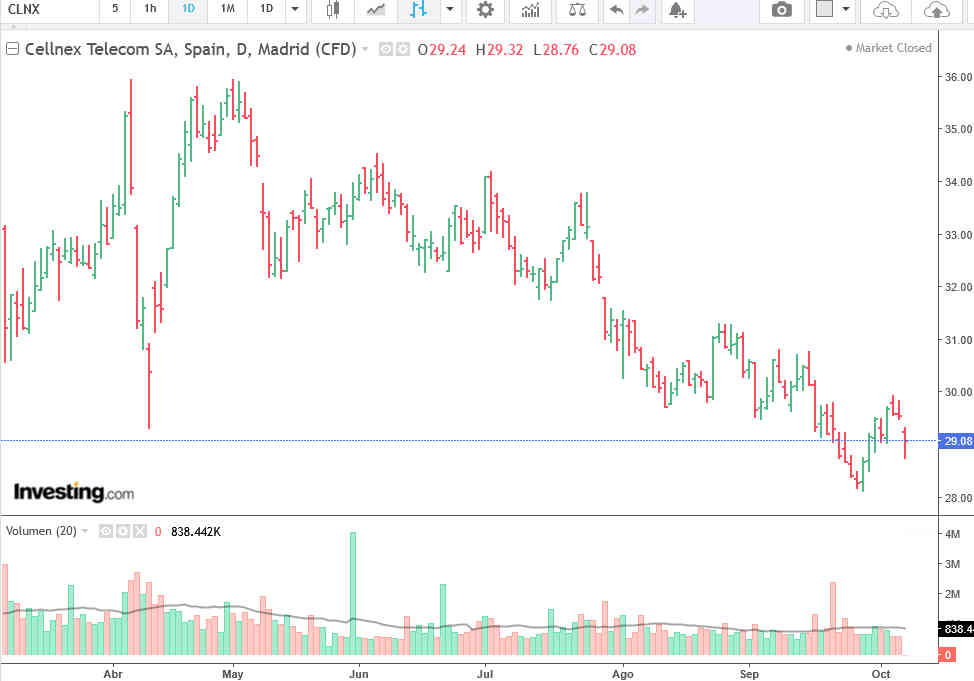 La empresa de telecomunicaciones española Cellnex (CELL:MC) ha cerrado la sesión con caídas dentro del Ibex35, pese a que la cotizada no ha hecho anuncio o presentación alguna al mercado. ¿A qué se debe entonces este retroceso del 1,76%? ¿Qué es lo que los inversores están poniendo en precio?