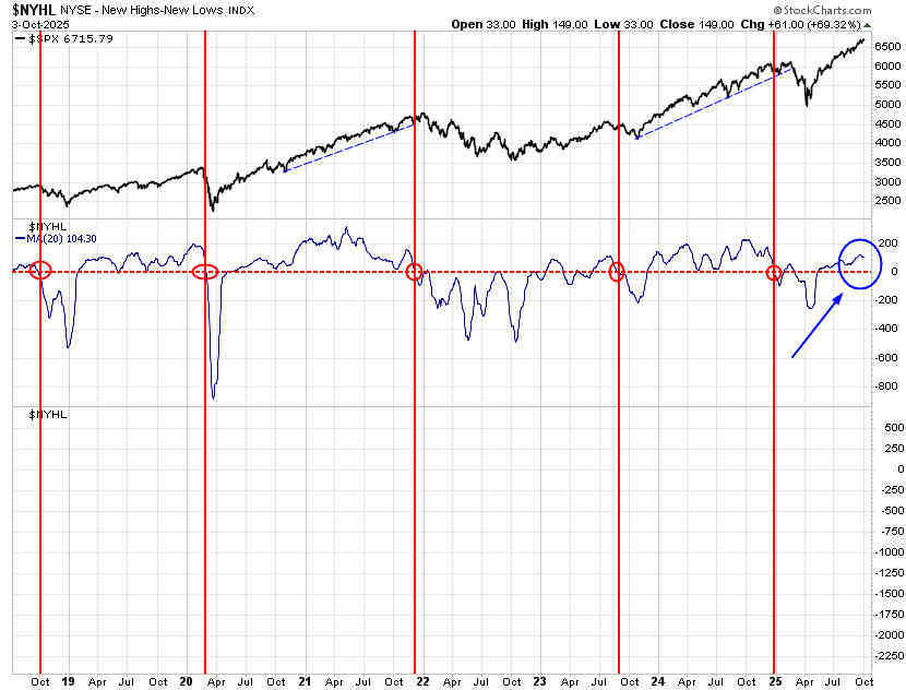 Además existen numerosos indicadores que vienen mostrando signos para la cautela desde hace semanas, muchos citados aquí aunque no el siguiente. El cociente entre nuevos máximos y nuevos mínimos del Nasdaq está perdiendo fuerza y girándose a la baja, todavía lejos de niveles de activación de riesgo pero emitiendo señal de aviso.