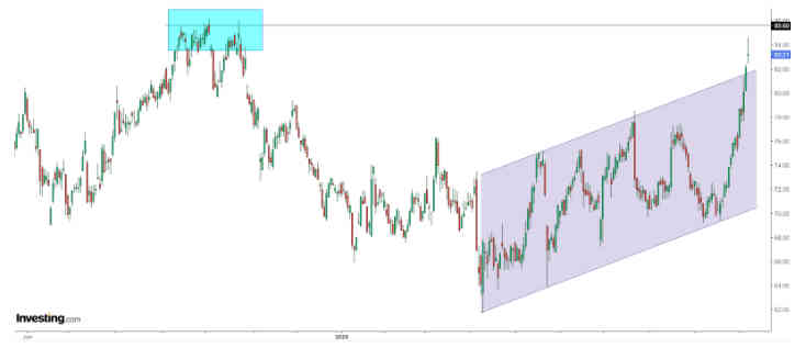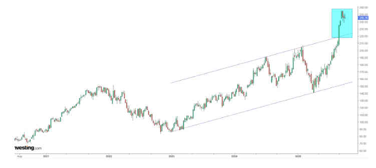 Técnico: está en máximos y tras romper el canal alcista por arriba cogió buen impulso.