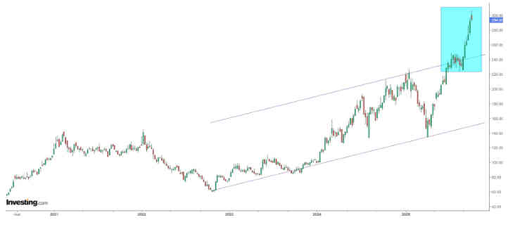 Técnico: está prácticamente en máximos y moviéndose cómodamente en su canal alcista.