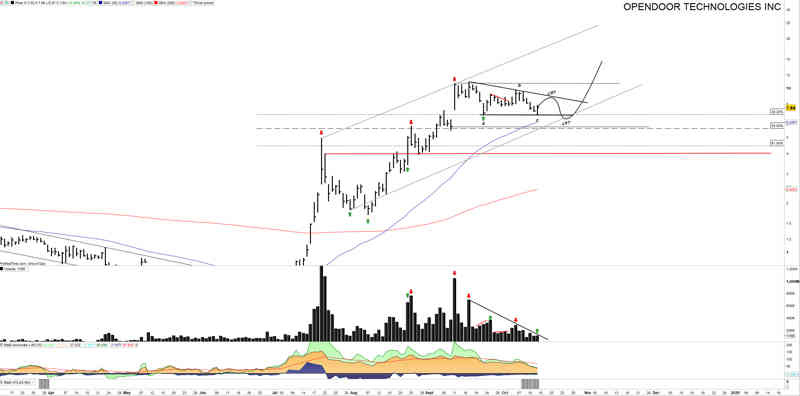 Parece querer consolidar impulso en forma triangulo descendente, una forma que en lo particular me gusta mucho. Volumen decrece al ritmo del retroceso, la oferta no está muy latente, y eso es lo que quieren saber.
