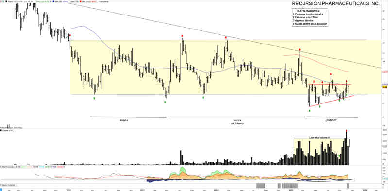 5.89$. Vuelve a la carga, con sesión de menos a más, donde cierra en zona de máximos de sesión y con el mayor volumen de su HISTORIA, cada vez más tensionada.