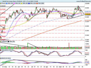 La corrección de EEUU del jueves y la caída de los futuros durante la madrugada pasaban factura al DAX que en los peores momentos superaba un 2% de corrección. A corto plazo el rebote podría tener continuidad hacia 24270 puntos, zona esta ultima que se corresponde a un soporte anteriormente perforado y que fue causante […]