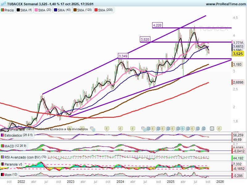 • Análisis técnico IAG, Redeia, Renta Corporación, Solaria, Tubacex y SNDL 20 octubre 2025