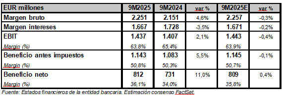 RESULTADOS BANKINTER 9M2025 vs 9M2024 / CONSENSO FACTSET