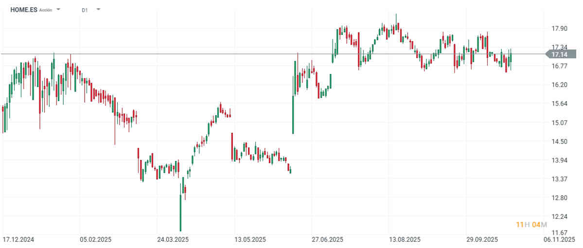 Las acciones de Neinor Homes (NEI:MC) continúan avanzando en el proceso de OPA sobre Aedas Homes y ya han completado la esperada ampliación de capital. El proceso va cerrando fases y en breve Aedas debería ser parte de Neinor, que en la jornada de hoy se anota una subida de más del 1%.