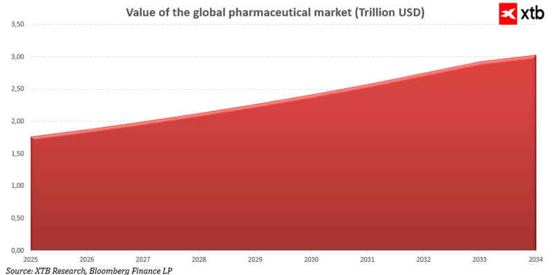 El mercado farmacéutico en 2025 está valorado en aproximadamente 1,77 billones de dólares y se prevé que crezca hasta los 3,03 billones en la próxima década. Este impresionante crecimiento está impulsado por tres grandes tendencias. En primer lugar, las poblaciones globales están envejeciendo, y el creciente número de personas mayores aumenta la demanda de medicamentos modernos contra enfermedades crónicas. Segundo lugar, la prevalencia de afecciones como la diabetes y el cáncer está en aumento, lo que abre amplias oportunidades para la innovación. En tercer lugar, el desarrollo de la biotecnología y la inteligencia artificial permite la introducción de terapias cada vez más eficaces y personalizadas.