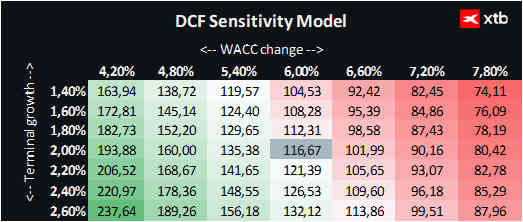 La tasa de crecimiento terminal se estimó en 2%. Otros parámetros financieros fueron promediados según resultados de los últimos cinco años.