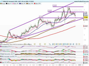 ALMIRALL Velas semanales, valor que ha sido capaz de alcanzar nuevamente la zona de resistencia de los 12,00€. Momento de consolidación de dicha zona, donde de superarla holgadamente, intentaría poner rumbo hacia los 14€. Soporte, 10,70€ y posteriormente los 10,25 y 9,79€. CELLNEX Velas semanales, perdiendo el apoyo relevante de la directriz alcista de l/p […]