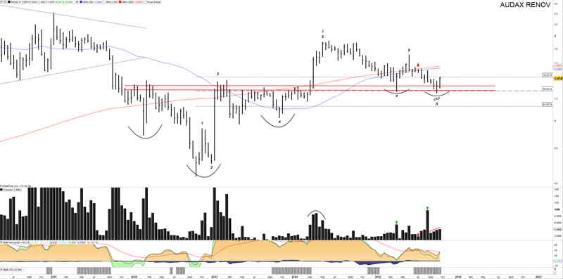 Posible (a,b,c) finalizado que lleve a finalizar periodo correctivo en forma onda II, todo ello sobre importante zona 1,30€ y nivel 50% Fibonacci.