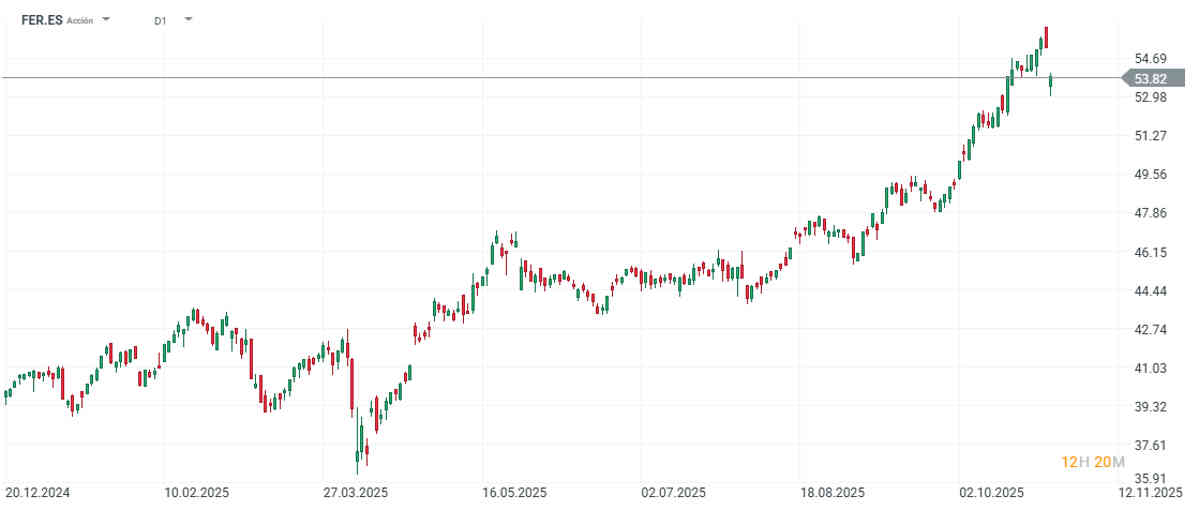Las acciones de Ferrovial suben un 30% en este 2025.