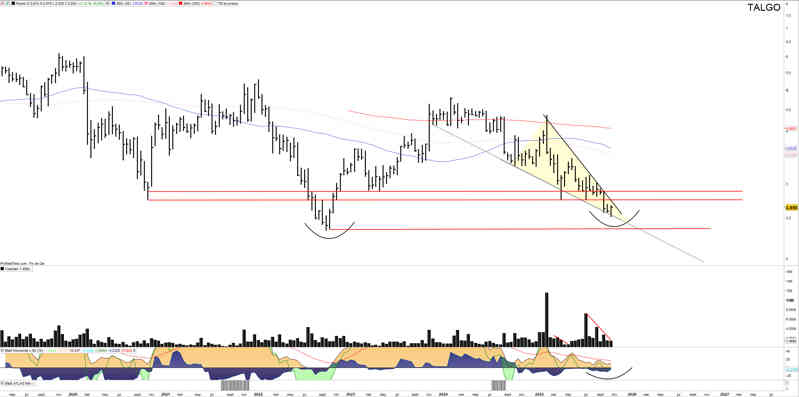 Gráfico de 2 semanas, recupera tendencia largo plazo tras sacudida, recupera triangulación y deja potencial HCHi como continuidad.