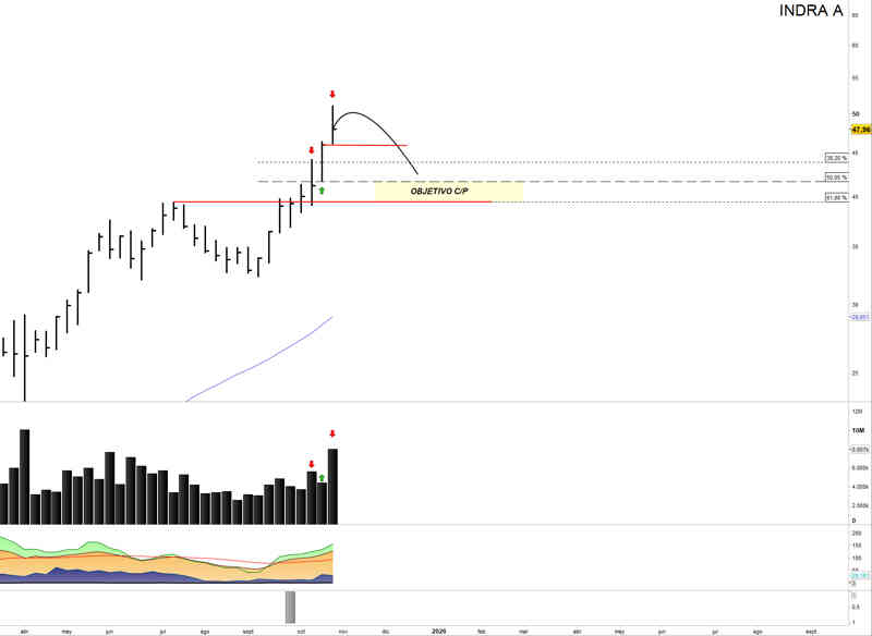 En el semanal, como llevamos tiempo defendiendo está en muy buena forma pero vemos con mayor claridad esas sacudidas mencionadas del lado diario, con volumen, cierre en mínimos.