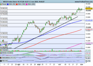 IBEX35 Los mercados de renta variable mantienen su tono alcista y continúan avanzando hacia nuevos máximos históricos, apoyados por un contexto de elevada liquidez y fortaleza en los activos de riesgo. Sin embargo, dentro de este escenario constructivo, el Ibex35 comienza a dar señales de cansancio tras varias sesiones consecutivas por encima de los 16.000 […]