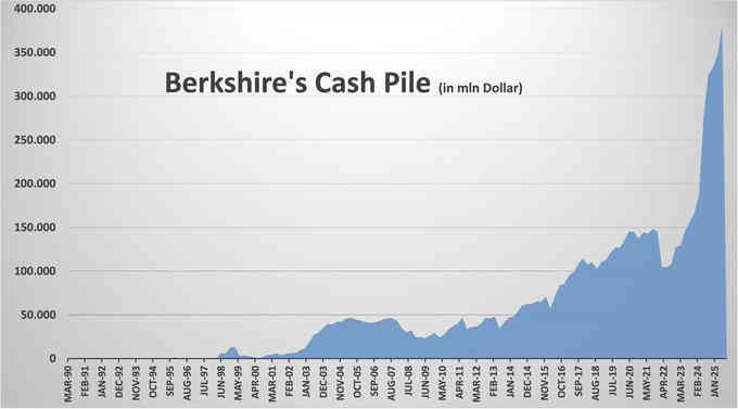 ¿Qué sabe o intuye Buffett y su equipo de gestión para mantener semejante volumen de dinero aparcado en liquidez, cuando su misión es tomar el dinero de los inversores para invertirlo en busca de «alpha»?