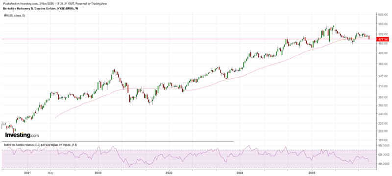 Berkshire ha evitado comprar nuevas empresas en los últimos trimestres, ni siquiera aumenta autocartera incluso cuando su cotización ha corregido más de un 10% desde los máximos de finales de abril.