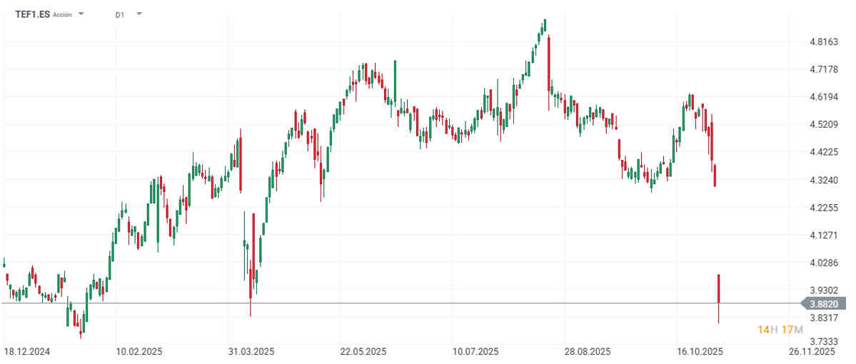 Las acciones de Telefónica (TEF:MC) se desploman más de un 10% después de presentar unos malos resultados del tercer trimestre del 2025 y presenta su nuevo plan estratégico con el que pretende darle la vuelta al negocio. Se trata del primer plan estratégico de Marc Murtra y empieza con una medida que no gusta a muchos accionistas: el recorte del dividendo.