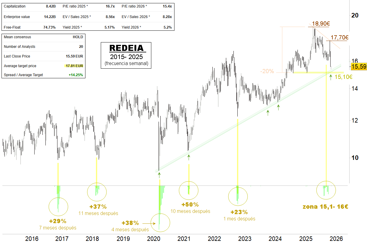 Recomendación: COMPRA ESPECULATIVA REDEIA zona de los 15 euros.
